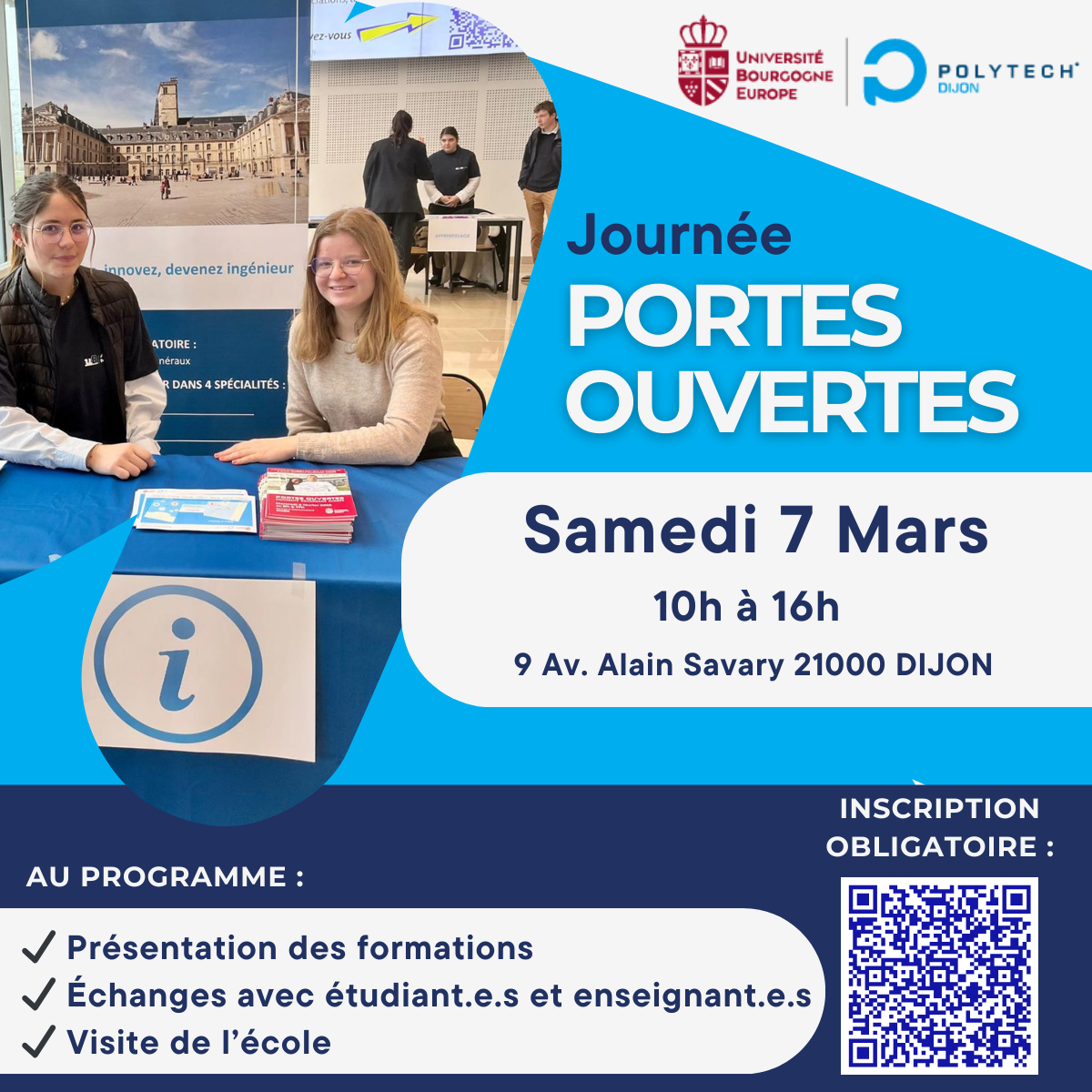 🎓 Journée Portes Ouvertes – Polytech Dijon 📅 Samedi 7 mars 2026 | 10h – 16h