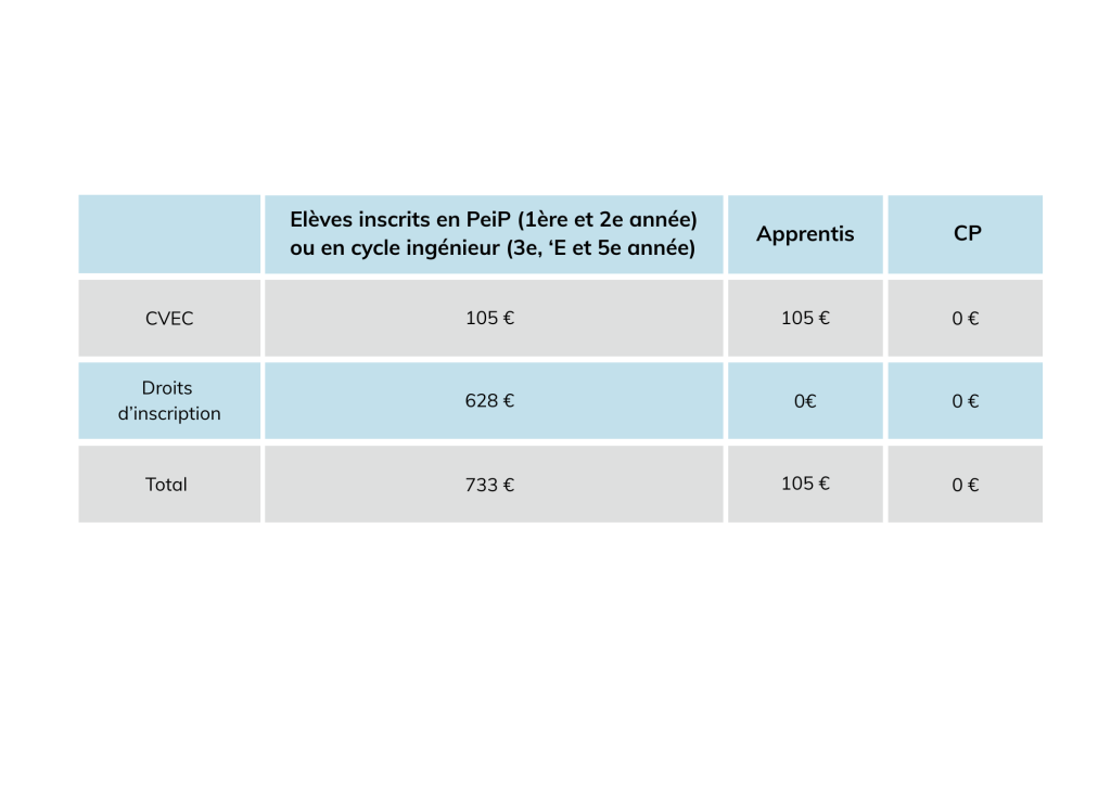 Tarifs des formations d'ingénieur