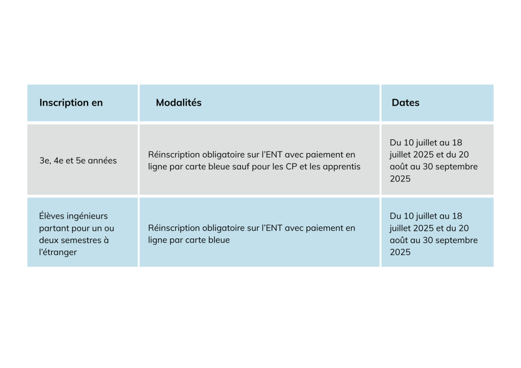 Réinscription obligatoire sur internet pour tous avec paiement en ligne par carte bleue.